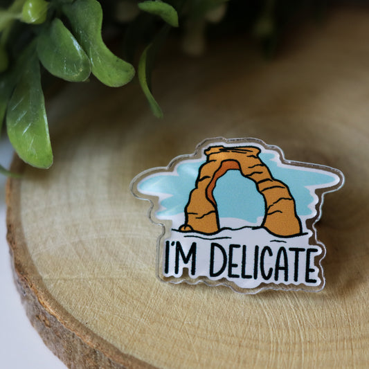 Acrylic pins are made on 1/8" clear acrylic with a UV print and black rubber clutch.